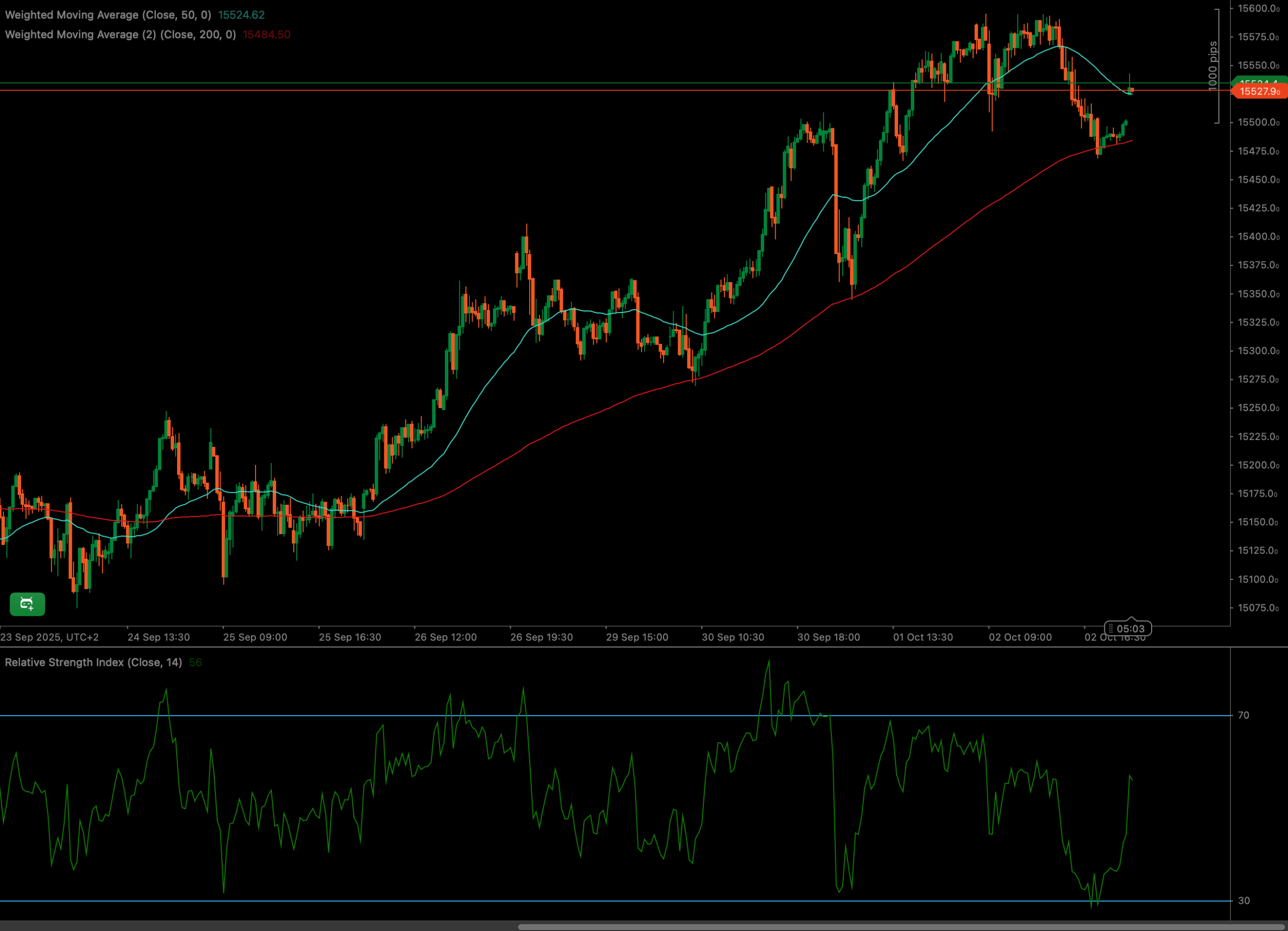 • 看跌设置:确认在 50 WMA 被拒绝,然后跌破 200 WMA (~15,485) 将提供做空机会,初始目标约为 15,400。